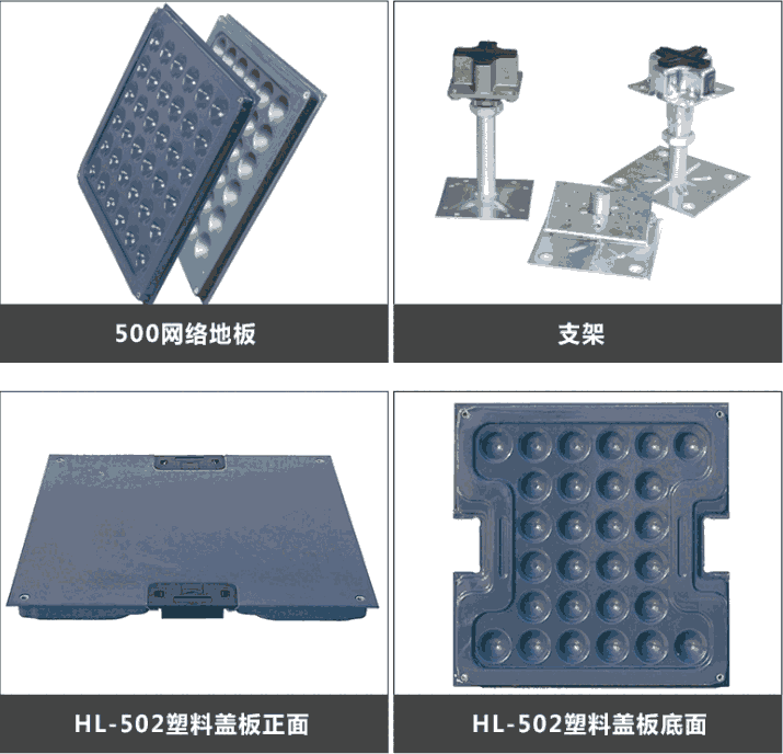 OA网络地板采用全钢结构,四角独立支撑结构,地板底面采用ST14拉伸版,表面选用SPCC硬质钢板,地板表面经过导电环氧树脂静电喷塑处理,内腔发泡水泥填充,四角冲角锁孔。支座采用镀锌或铸铝模压成型,丝杆高度可任意调节,地板四周成型有切边和包边两种,地板规格为500*500。