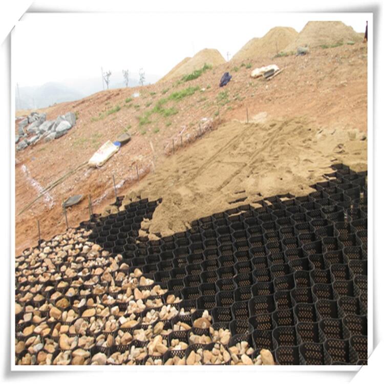 蜂巢格室——当今先进的土体安稳技能,处理土体安稳难题 用高分子资料经超声波焊接而成的蜂巢式三维网状物,在其格室内填充泥土、沙石或混凝土等资料构成 具有强壮侧向束缚和刚度的结构。是基于蜂窝束缚技能高分子技能,应对土壤安稳与强化难题的生态、 经济的革新的资料。经过体系中相互连接的巢室所构成的好的三维网格来束缚和安稳土体,蜂巢束缚体系显著进步了土体功能。