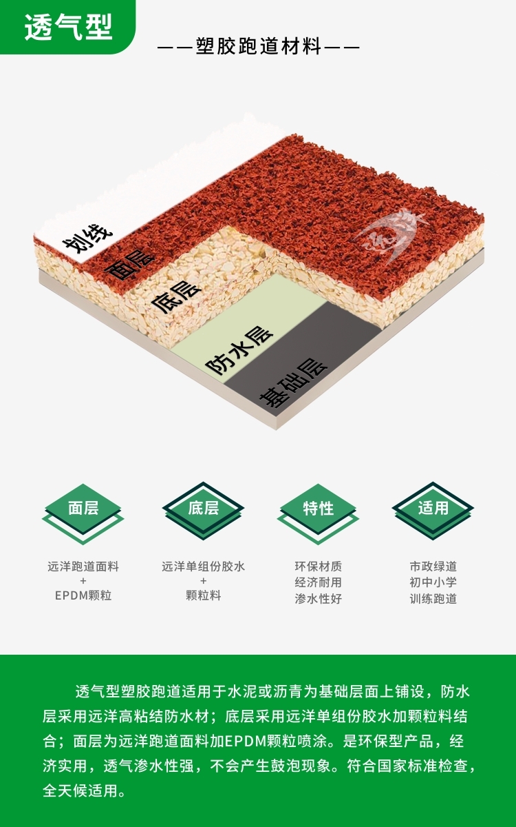 标准塑胶跑道 中小学校操场跑道 透气型塑胶跑道施工