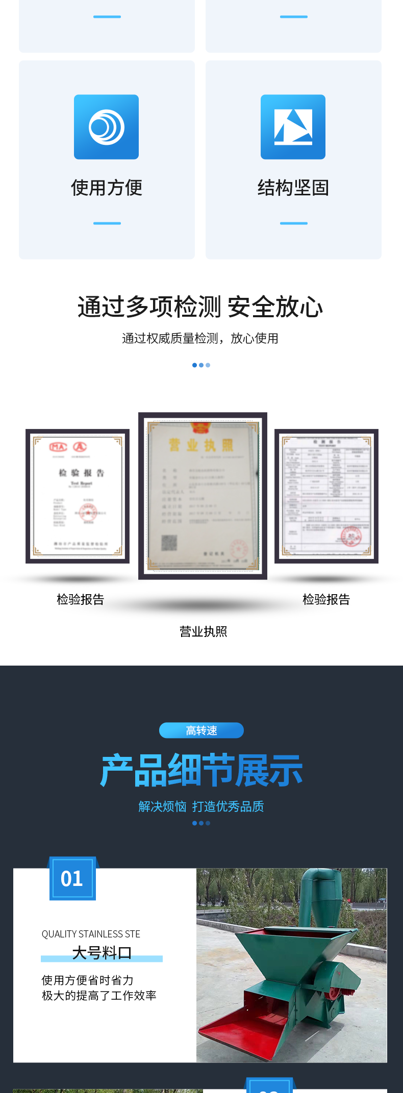 三相电自动进料秸秆牧草粉碎机加厚锤片式饲料打碎机沙克龙碎草机