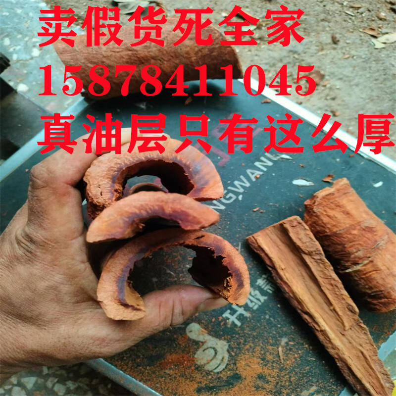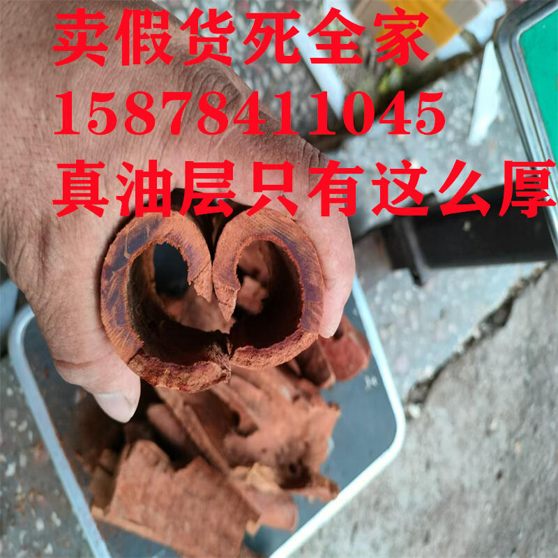 为啥油层排第四了,因为只要年份高厚的基本都会有油层,我家油层不存在满油,切了几年肉桂,没遇到过满油的,个人认为真正的紫油桂不存在满油。因为桂肉桂他是有两层,外层内层,外层是新长出来的不可能有油,只有内层才会有油层,如果你买到满油的还是丢了吧,人为做的,我和我朋友无聊的时候研究过如何把生肉桂做成满油,也做出过满油紫油桂,只是个人认为,拿去治病的东西必须实事求是,可以谋财不可害命