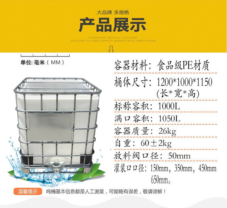 上海尊霖IBC吨桶厂家直销全新加厚1000L敞口塑料集装桶