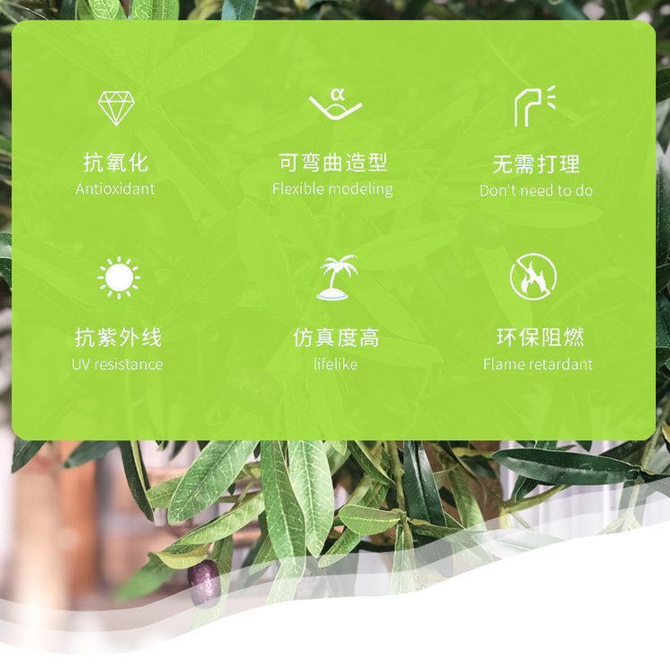 厂家保障:叶片跟踪服务2年,出厂2年内不断枝、不掉叶,一般可使用5—6年。