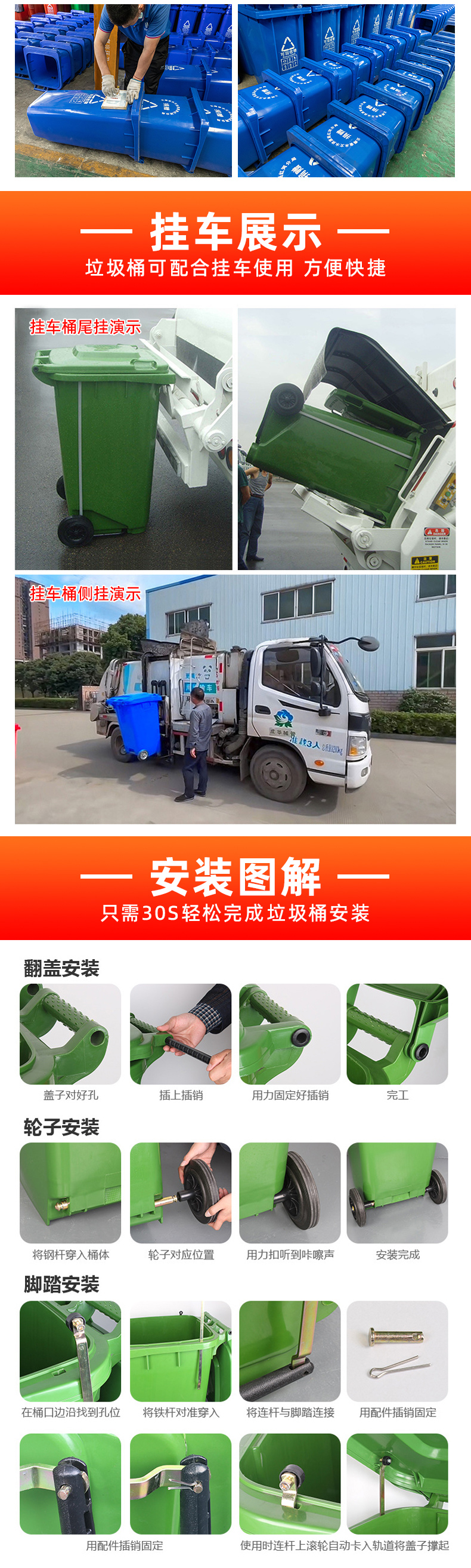 赛普塑业大容量长方形塑料垃圾桶 240/120升加厚挂车分类垃圾筒 是否支持加工定制