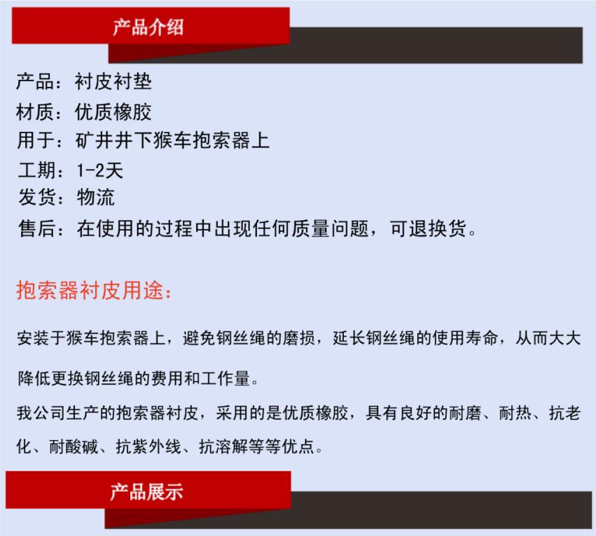 煤矿猴车用抱索器衬垫衬皮、抱绳器摩擦垫、优质橡胶制品