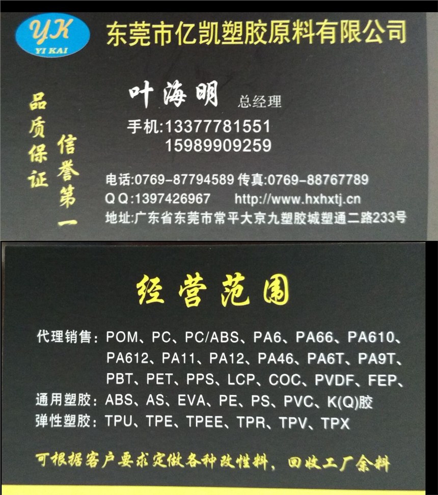 商铺名称:东莞市亿凯塑胶原料有限公司