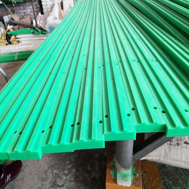 链条导轨也叫链条导向件,是一种静压导轨,用于支撑和导向链条,减少链条磨擦,降低噪音,增强链条使用寿命。采用840万超高分子量高耐磨,耐温工程塑料"S","S1000"PE-UHM材料,具有经济,无污染特性.高耐磨、耐温、精密、稳固、无声、环保等高精度的链条导向。链条导轨-磨损小.摩擦阻力小.自行润滑.(不需任何润滑油),具有抗冲击性.使用温度范围-200~+80℃.具有减震作用,在潮湿环境下不易受潮.具有高的抗化学性能.有抗腐蚀性.通过欧盟EU和美国FDA认证,可直接和食品接触使用。