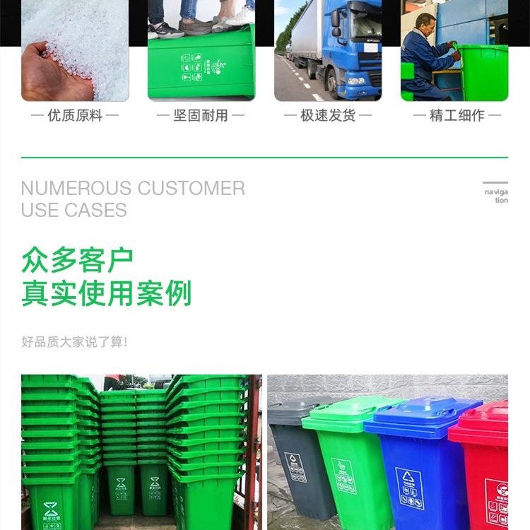 6、广泛适用于各种环境,更可用与垃圾分类收集,如物业、环卫、工厂等行业,有多种颜色选择。