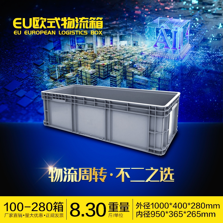 塑料周转箱(塑料胶箱)是选用具有高冲击强度的HDPE(低压高密度聚乙烯)和PP(聚丙烯)为原料注塑而成。塑料物流箱广泛有广泛用途,方便零件周转便捷、堆放整齐,便于管理。其合理的设计,优良的品质,适用于工厂物流中的运输、配送、储存、流通加工等环节。箱体工艺大多都为一次注塑而成,有些塑料箱还配套了箱盖(有的物流箱盖是单独配套使,一般都通用几款同类型的物流箱产品。 塑料周转箱(胶箱)适用于服装、五金、机械、电子、化工、仪表、养殖业、食品、水产、物流仓储等行业,可用于盛放食品,清洁方便,零件周转便捷、堆放整齐,便于管理。其合理的设计,优良的品质,适用于工厂物流中的运输、配送、储存、流通加工等环节。周转箱可与多种物流容器和工位器配合,用于各类仓库、生产现场等多种场合,周转箱帮助完成物流容器的通用化、一体化管理,是生产及流通企业进行现代化物流管理的需要品。 特点 无毒、无味、防潮、耐腐蚀、重量轻、耐用、可堆叠、颜色丰富、等特点。