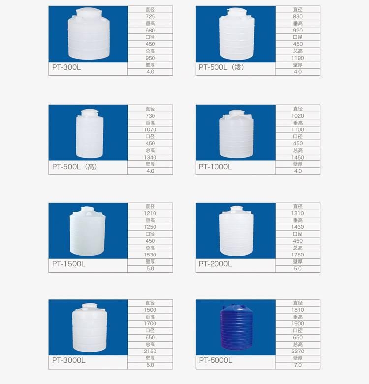 塑料水箱特点;1、圆柱形立式储罐受压均匀,风荷载小,桶壁内外光滑,无死角,无沉淀,密封性好,彻底杜绝了空气飘尘中的有害物质及小动物入侵,确保水质不受二次污染。箱壁无直角、不存污物、便于清洗的PE圆柱形水塔 圆柱形水箱采用韩国进口食品级LLDPE材质,箱顶和箱底滚塑一次成型,无焊缝不渗漏,耐腐蚀性高,水箱设计合理。