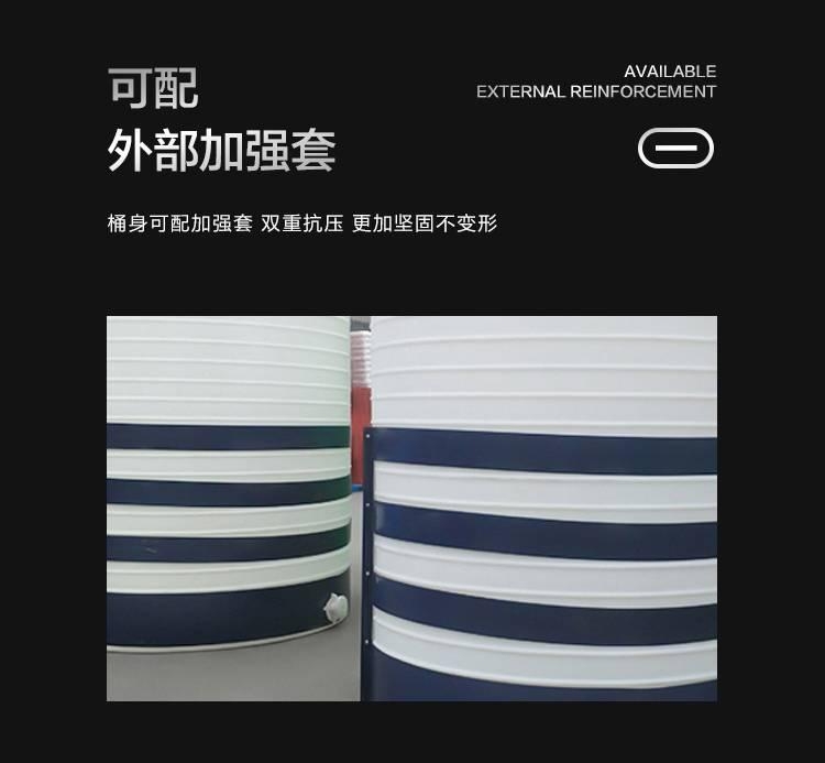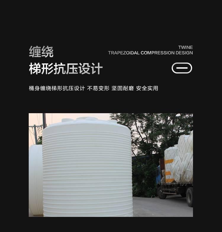 滚塑储水罐 立式圆柱形pe水箱 整体采用第四代梯形抗压设计,壁厚根据压力科学设计下厚上薄,彻底解决罐体爆裂可能性;为防止水箱在使用中出现变形或桶身凸出的情况,桶身整体采用环绕加强筋加固。