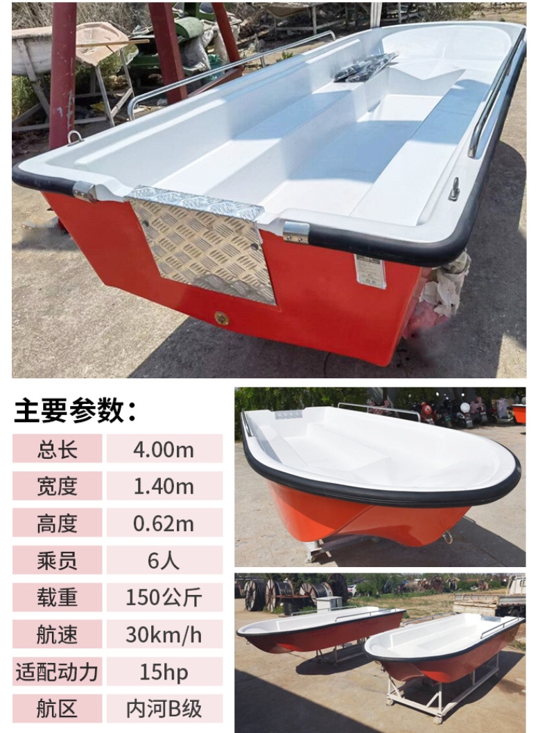 公司生产的玻璃钢船(玻璃钢冲锋舟),适用于防汛应急、消防应急指挥、休闲垂钓、鱼塘自用,都是非常好的选择。材质坚固,做工精良,尺寸从4米到6米多不等。更具客户需求,可支持定制。