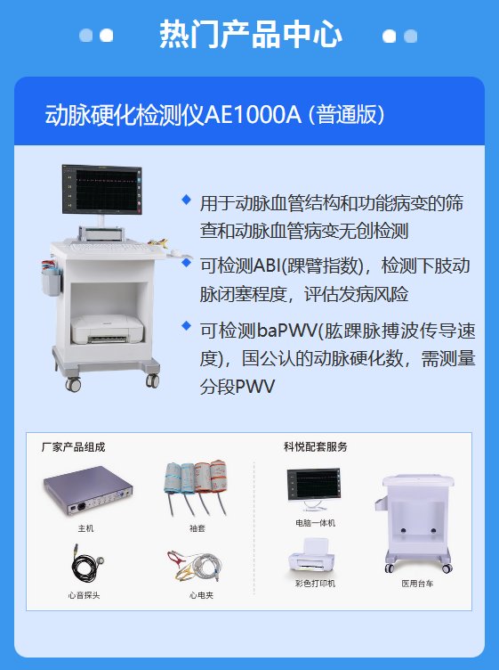 可检测参数 | ABI(踝臂指数)、baPWV(肱踝脉搏波传导速度) | ||