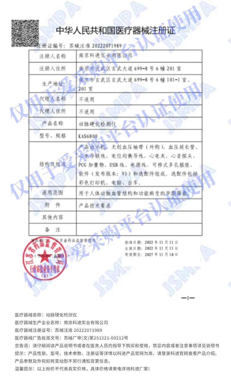 适用范围 | :用于人体动脉血管结构和功能病变的早期筛查 | ||