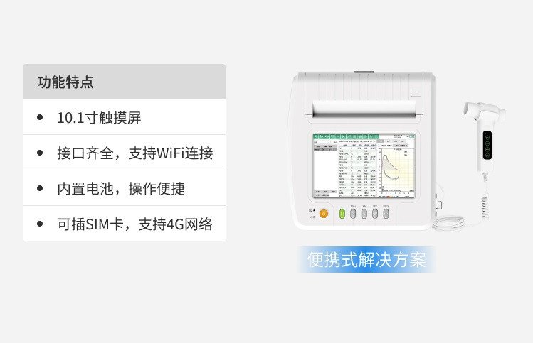便携式设计及数据传输方便床旁检测,携带方便,支持USB连接、蓝牙连接