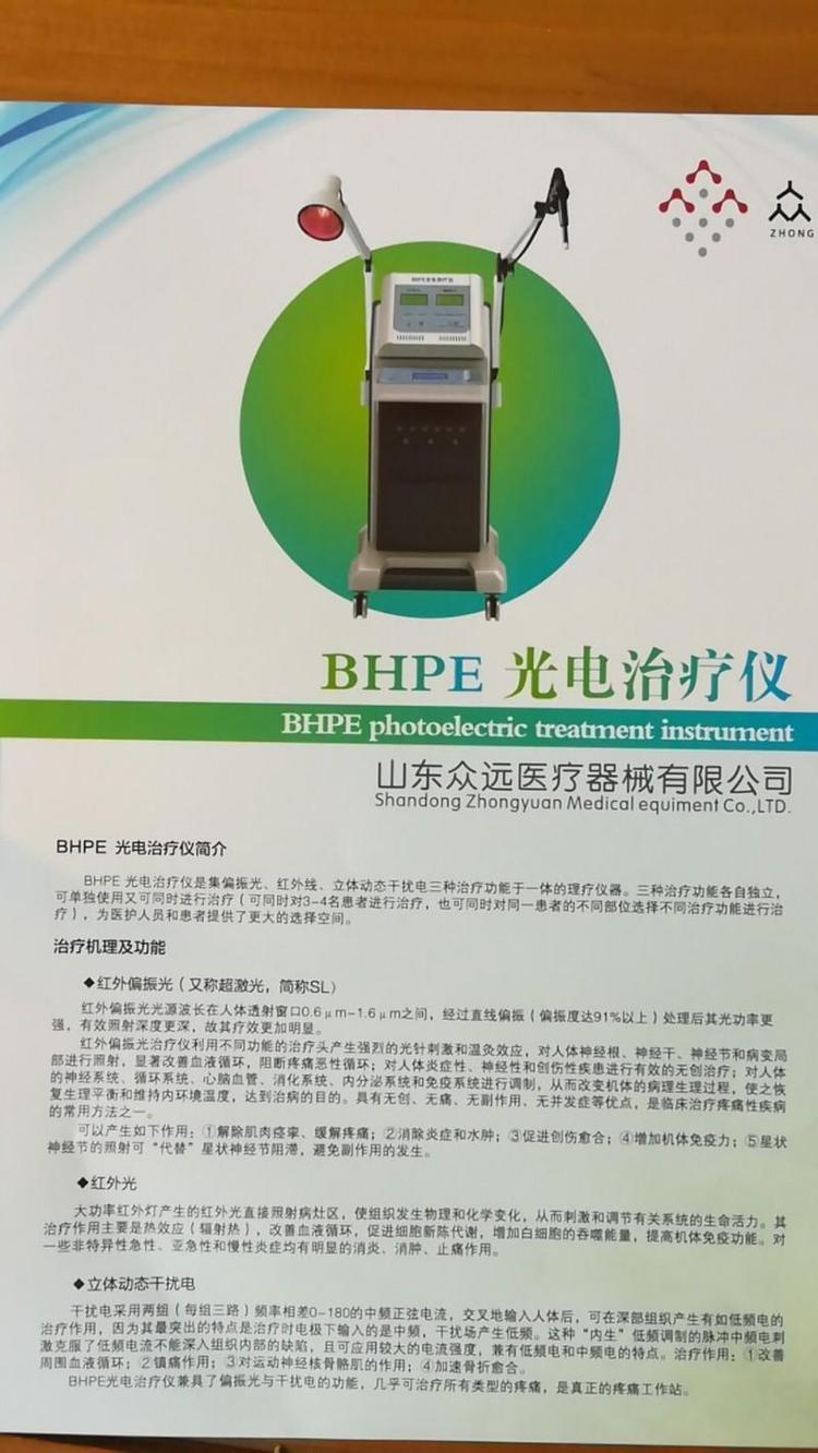 BHPE光电仪是集红外偏振光、红外线、立体动态干扰电三种功能于一体的理疗仪器。1路偏振光 1路红光? 1路干扰电,三种功能各自独立,可单独使用又可同时进行,提供了更大的选择空间。