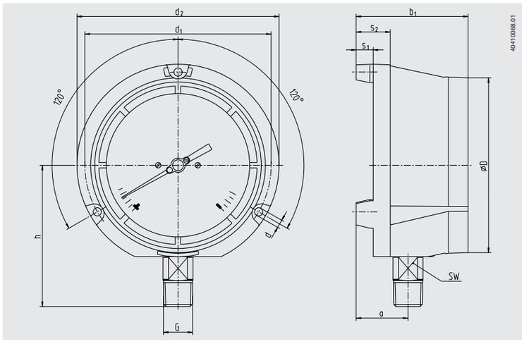 633.34型填充硅油的表壳可用于具有高动态压力负荷和振动的应用。