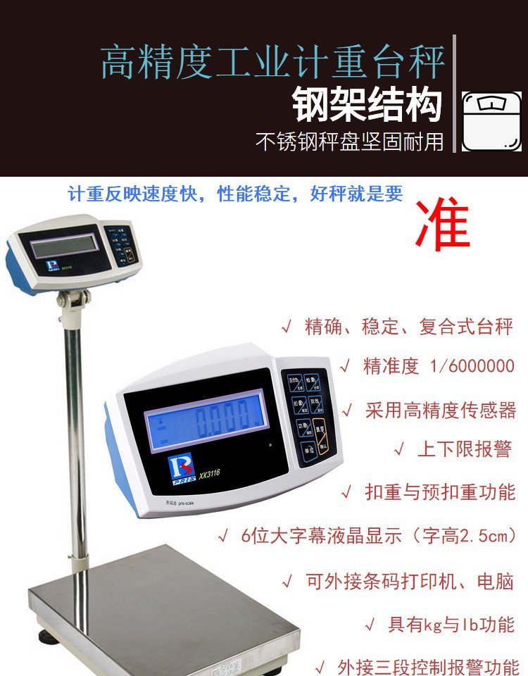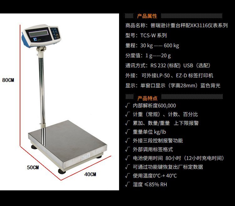 普瑞逊电子台秤150kg/5g电子称XK3116称重仪表置零上下限报警 品牌 | 普瑞逊 | ||