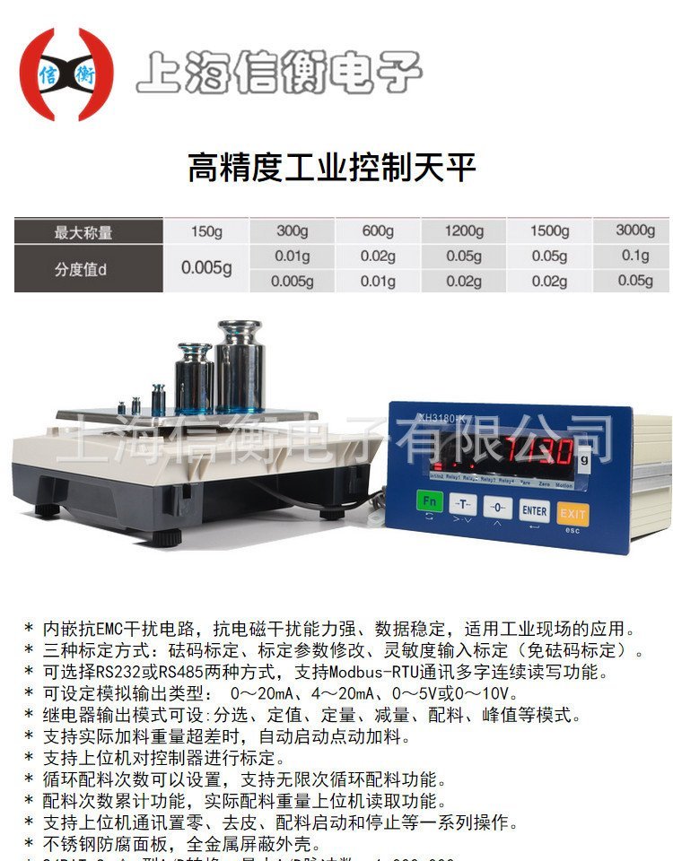 信衡电子天平300g/0.01g工业控制天平485通讯modbus-RTU协议接PLC 品牌 | 信衡 | ||