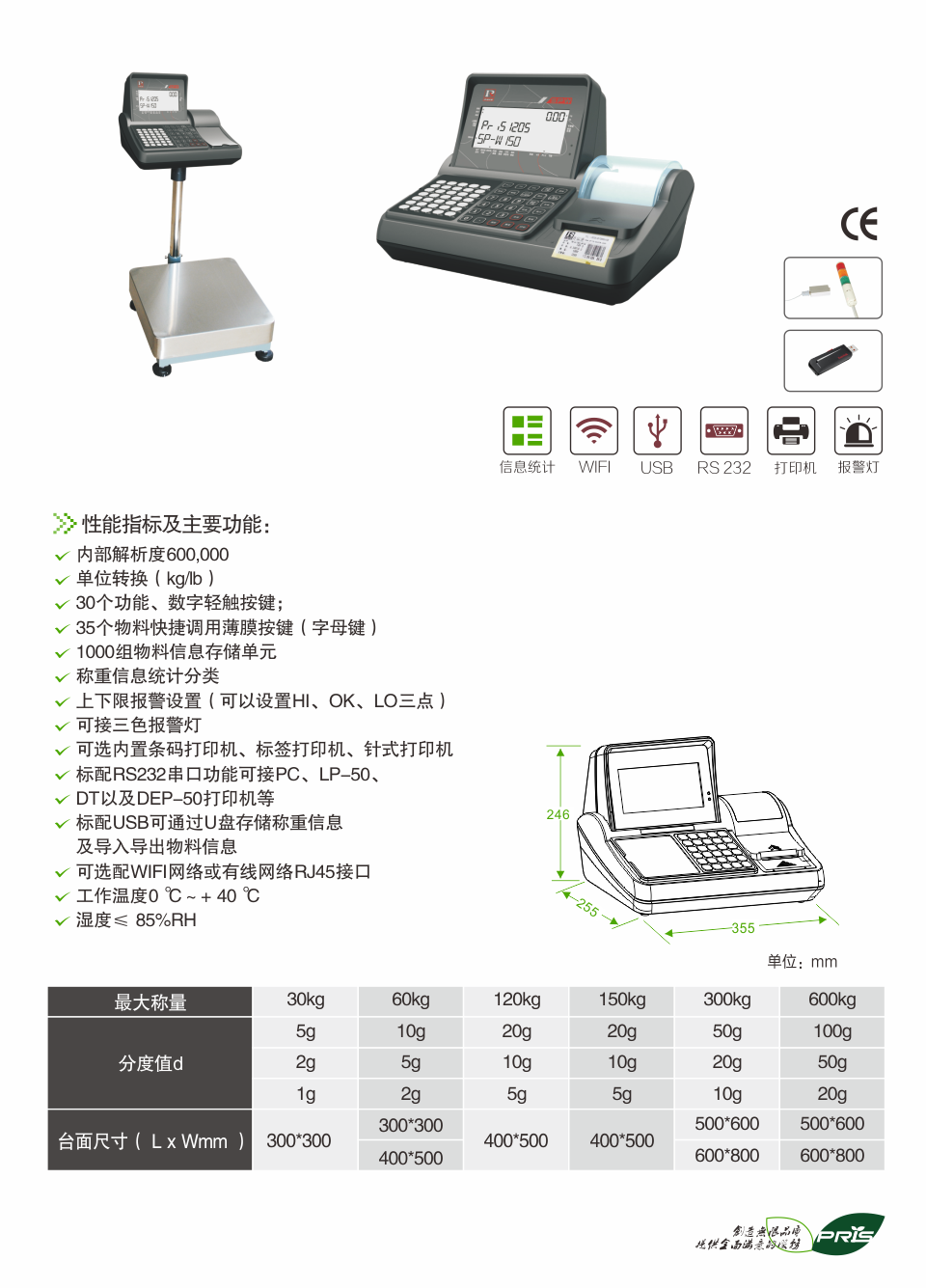 普瑞逊标签打印电子台秤150kg/5g电子称SPW-310 U盘存储电子秤 供电方式 | 220V | ||