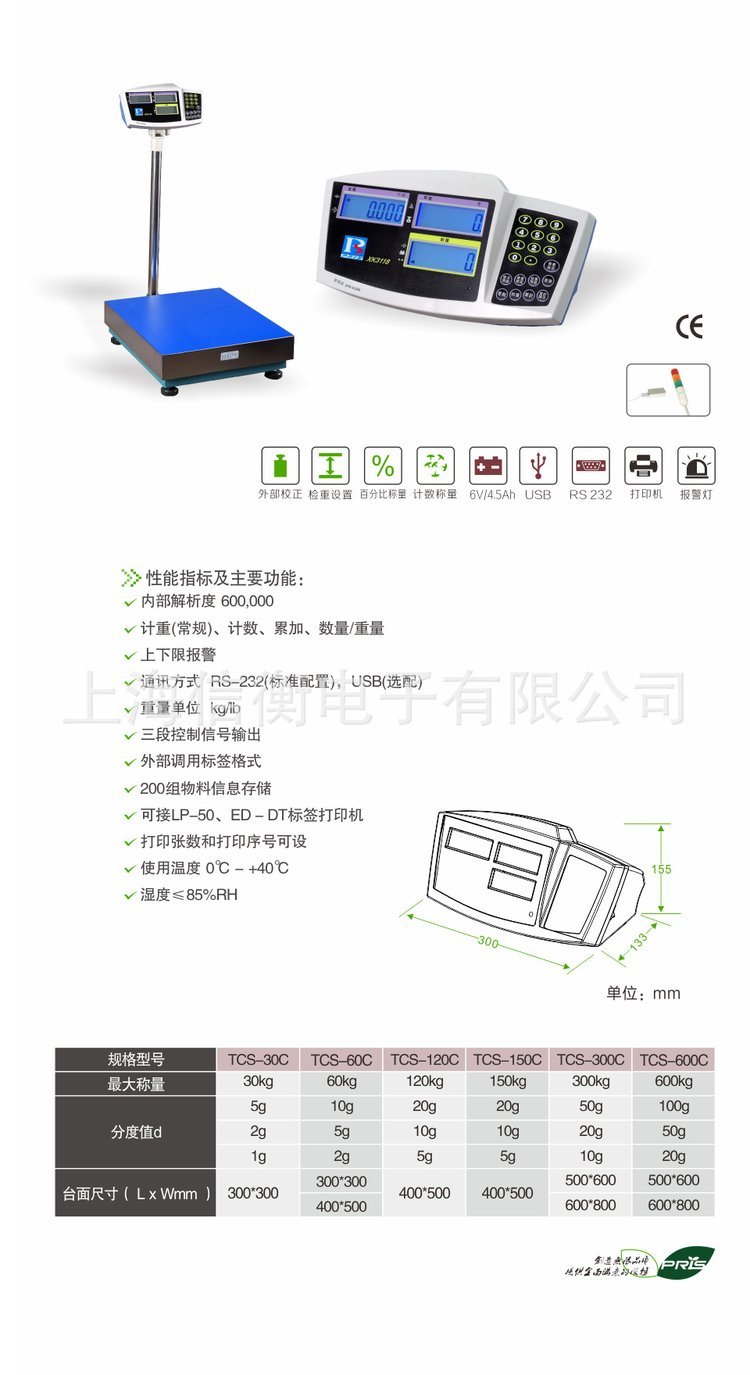 普瑞逊电子秤150kg/10g三色灯上、下限报警电子台秤CB-01控制盒 品牌 | 普瑞逊 | ||