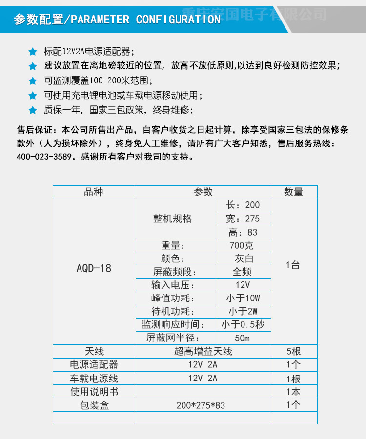 配套包装 | 主机,6根天线,电源适配器,车载电源线 | ||