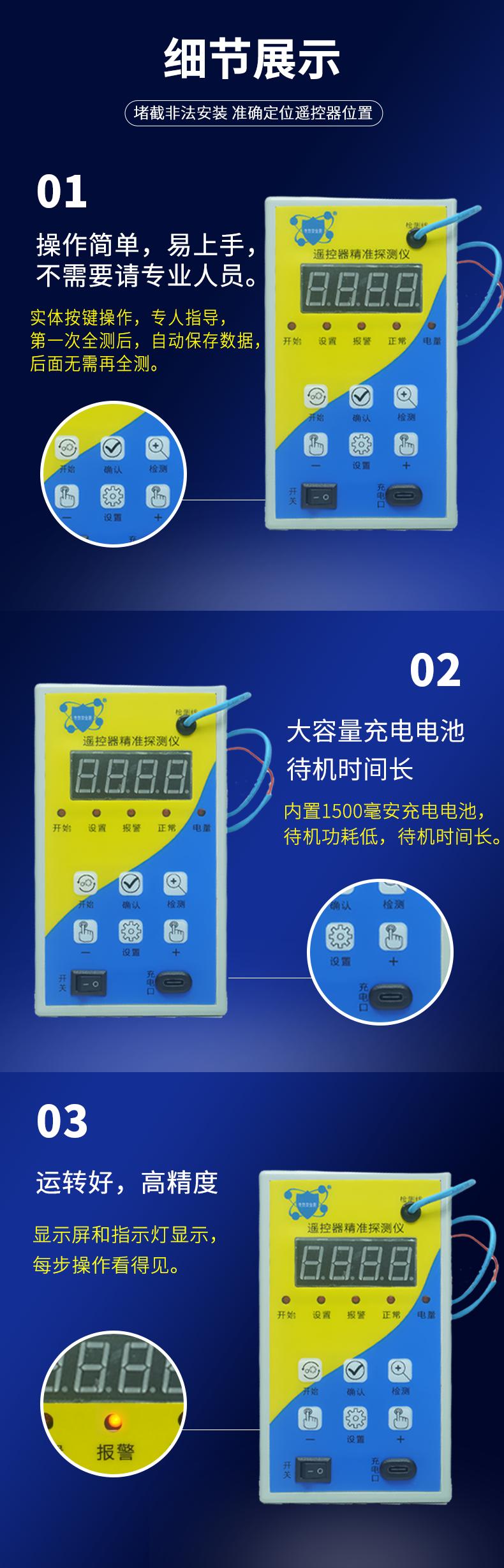 作用 | 精准查找非法遥控设备,准确定位遥控器安装位置 | ||