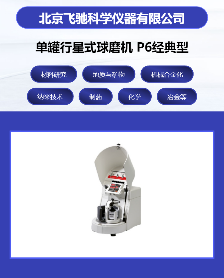 飞驰 德国 进口 单罐行星式球磨机/研磨仪 P6 高效 坚硬/脆性样品 粉碎程度 | 纳米级 | ||
