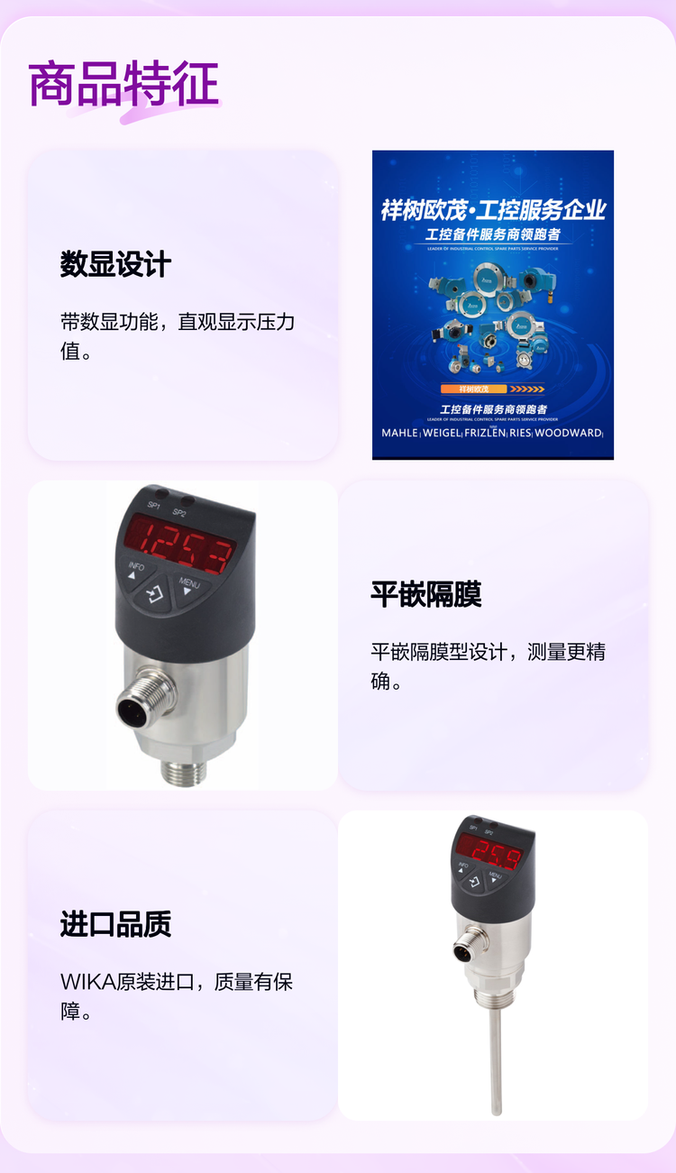主要特点 | 原装进口,平嵌隔膜型设计 | ||
