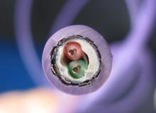 2、铝箔、裸金属丝编织双层屏蔽,PVC外护套,阻燃,外观紫色。