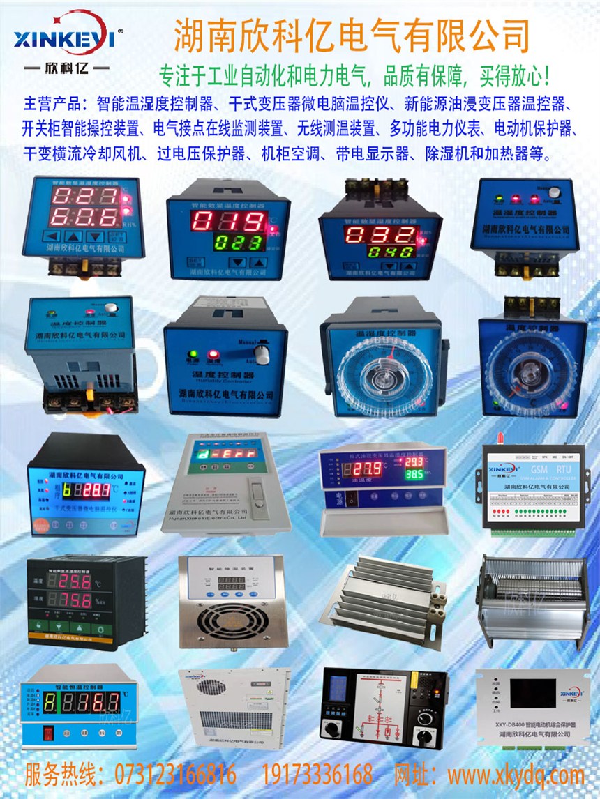 多功能电力仪表、开关柜智能操控装置、智能温湿度控制器、电动机保护器、电气接点在线监测装置、干式变压器电脑温控仪、新能源油浸变压器温控器、机柜空调、干变横流冷却风机、过电压保护器、户内高电压带电显示器、除湿机和加热器等。