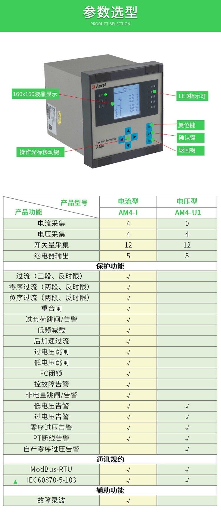 微机保护装置 安科瑞AM4 智能配电进馈线厂用变保护