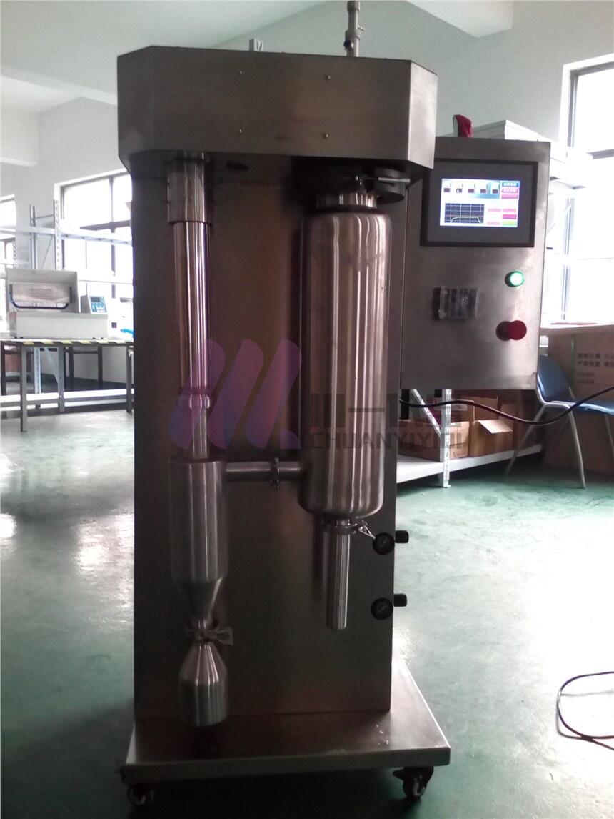 3、小型喷雾干燥机喷雾枯燥机留意的事项,适用于水溶剂,不溶于水的物料不宜过粗。②物料不宜过粗,过粗的物料会阻塞蠕动泵进料管、同时会堵住喷头因而无法正常出料。③如物料简单沉积、主张配磁力搅拌器或超声波乳化涣散器配套运用。④样品枯燥终了取出样品装袋时尽可能短时间触摸空气、以避免空气中的水份使样品受潮。5、喷雾枯燥机的物料颗粒度巨细,能够小,微米纳米级别的都能够操作,在喷咀被阻塞时,会主动铲除,假如是大的物料只能配套大的喷头,喷头巨细0.75 1.0 1.5 2.0mm,小型喷雾干燥机假如物料太大的话,挨近喷头巨细的话,那也是不可的。喷雾枯燥机能够接连作业一个月