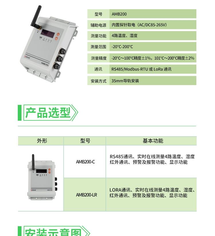 AMB200-C低压母线测温装置无线传输母线槽内温度实时监控