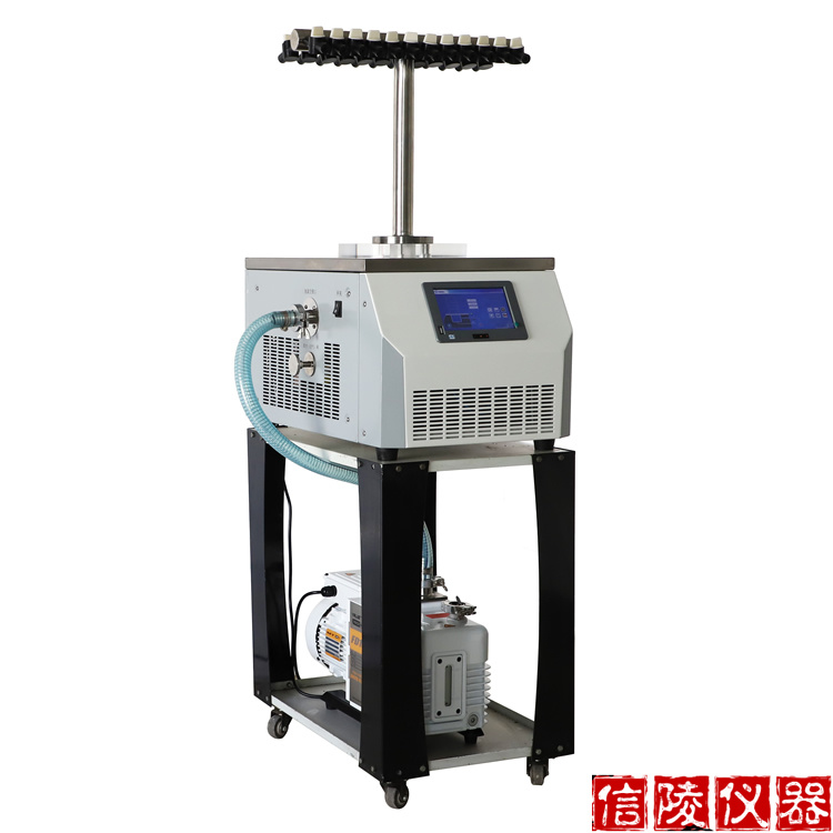 LGJ-10E T型架实验型真空冷冻干燥机标配24只橡胶密封阀,可挂安瓿管24只,特殊要求可定制。适用于安瓿管对细菌、真菌等微生物菌种的保藏,实验室常采用安瓿封存法。样品冷冻干燥后封装在小安瓿内。它具有保藏期长,变异小,便于大量保藏及适用范围较广等优点。
