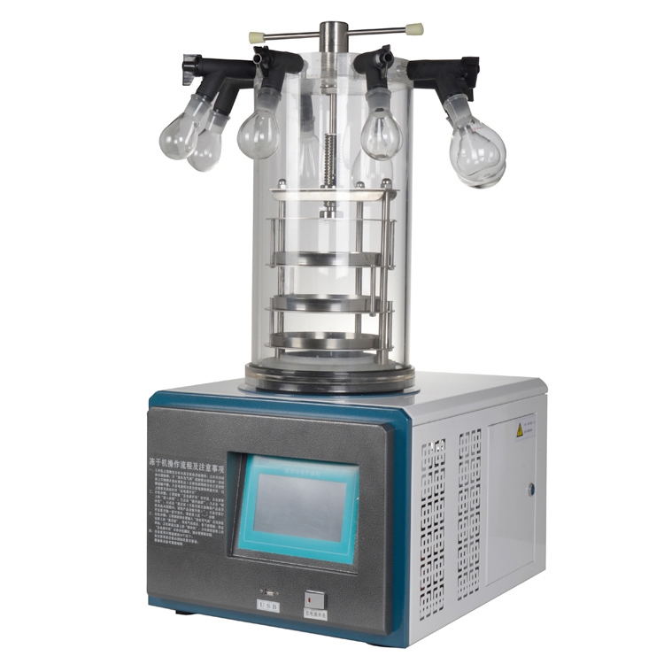 LGJ-10台式冷冻干燥机可以放在实验台上,适用于实验室使用或少量生产,可满足大多数实验室常规冻干的要求。真空冷冻干燥机广泛应用于生命科学、材料化工、食品营养、环境检测、生物科学等领域。标配样品温度探头,可以实时样品在预冻时和真空升华时的温度。样品温度探头要接触样品,不能脱离样品。注意观察样品预冻时的温度是否达到共晶点以下;真空升华后期注意观察样品温度是否接近室温,以判定冻干结束。