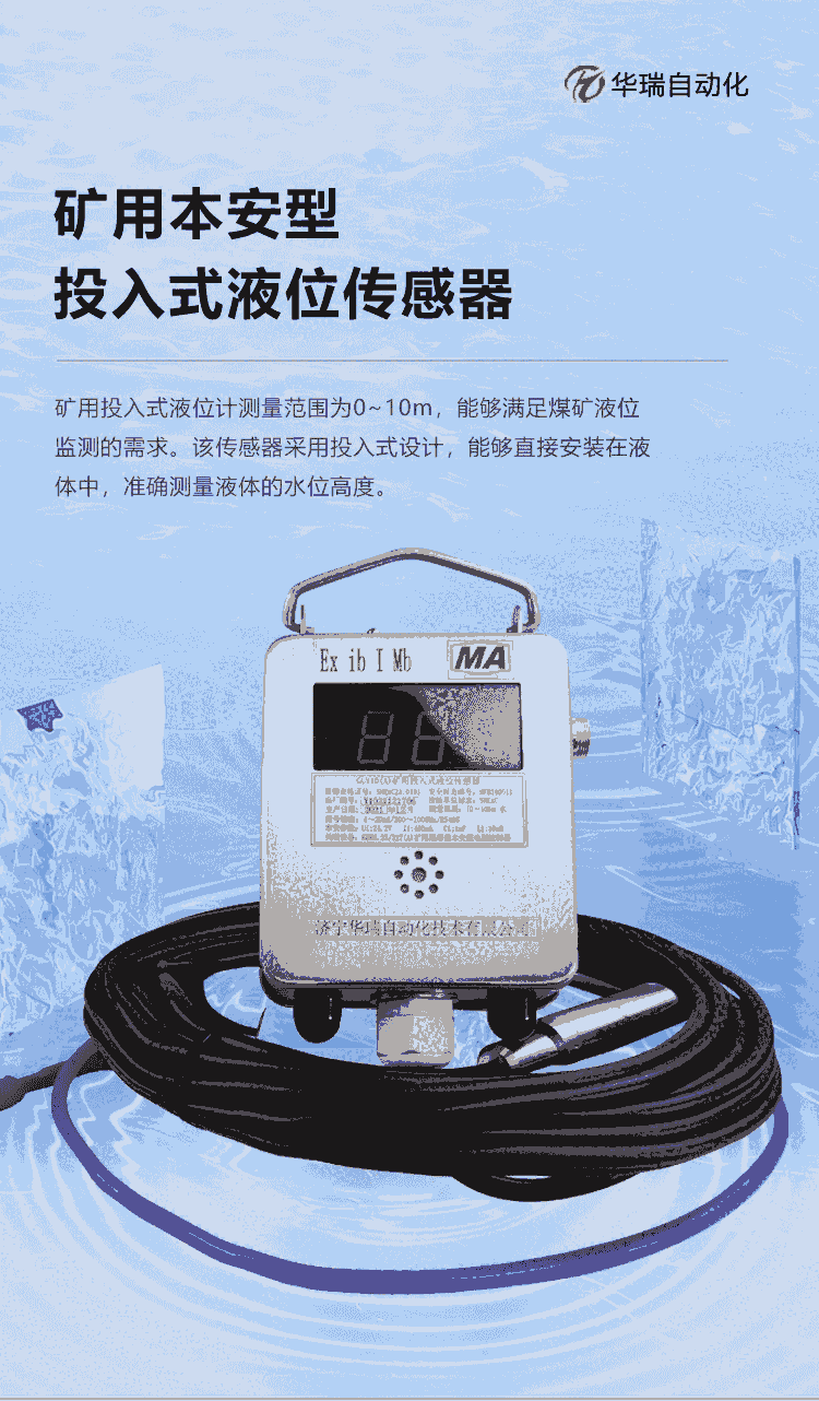 煤安认证井下矿用液位计 多种输出高低位报警济宁华瑞矿用投入式液位计是采用半导体差压敏感测量探头制成的投入式智能投入式液位测量仪表。该仪器适用于煤矿井下水仓投入式液位的测量以及其它需要测量投入式液位的场所。仪器采用红外线遥控调校,无调节孔,密封性能良好。