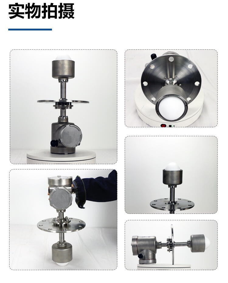 (1)当测量液态物料时,传感器的轴线和介质表面保持垂直;当测量固态物料时,由于固体介质会有一个堆角,传感器要倾斜一定的角度。