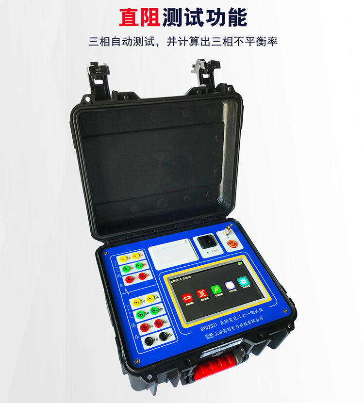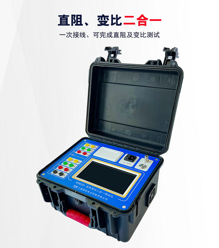 我公司创新性的研发出大容量锂电池供电的二合一配电变压器测试系统(直阻+变比),我们仅需要一套设备,可以完成两个项目的测试,不需要频繁的拆接测试线。