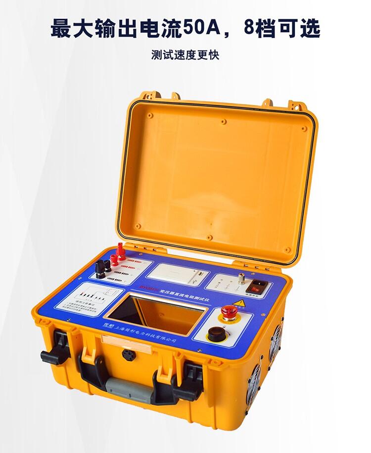 1. 测试电源可输出电流50A,测试范围0~25kΩ,满足绝大多数变压器的测试需求。