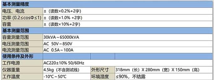 仪器可对10kV配电变压器的能效等级进行准确的测量与判断,并且对应能效等级,油浸式变压器损耗可测量到S22(电工钢带)和SH25(非晶合金);干式变压器损耗可测量到SCB18(电工钢带)和SCBH19(非晶合金)。