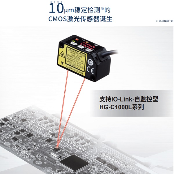 采用位移传感器所使用的高精度CMOS影像传感器,以及位移传感器一直使用的本公司独特的算法,实现了微型激光传感器1mm/100mm的高精度。
