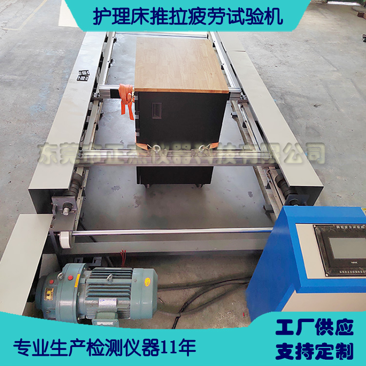 东莞正杰仪器公司生产的的护理床推拉耐久性疲劳试验机,推拉寿命试验机本试验机符合EN,IEC等有关标准。适用于有关生产厂家和质检部门对安全门推拉耐久性试验。本机採用液晶屏全中文显示,使用方便,全部数控方式控制力度、次数。硬体採用步进电机驱动器 PLC 液晶屏方式力传感器,精度高。由程序控制以保证施力的要求。