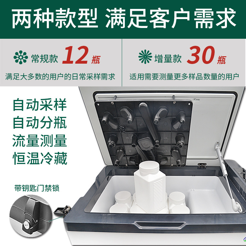 仪器符合中国HJ/T 372-2007《水质自动采样器技术要求及检测方法》,是集流量测量、水样采集,自动分瓶、恒温冷藏一体的多功能环境监测仪器,具有体积小,方便移动、操作简捷、环保节能等特点。适用于各级环境监测站、监察机构、科研院所、水务、市政及污水处理厂,对工业污染源排放口、江、河、湖、海等水样进行自动采样。