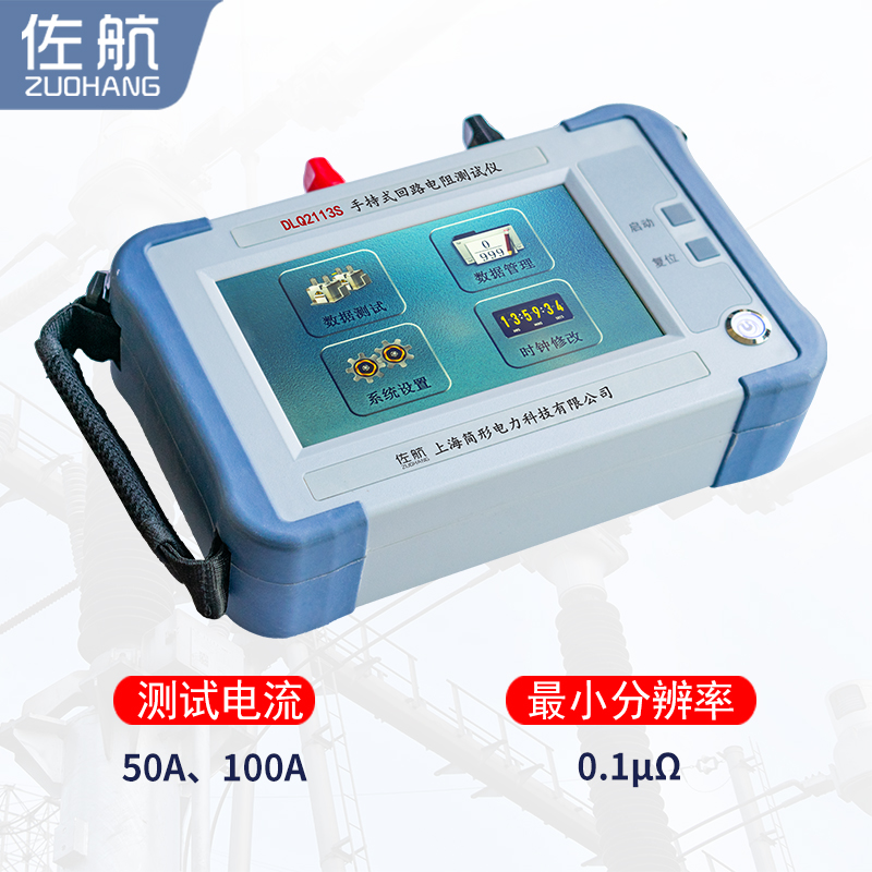 佐航 DLQ2113S 手持式回路电阻测试仪是公司根据 IEC 标准及我国zuiXIN电力执行标准 DL/T845.4- 2004 有关规定,发挥自身技术优势,精心研制的高精度、数字化开关检测仪器。该仪器采用高频大功率恒流开关电源技术,可测得微欧姆级接触电阻。广泛适用于各种开关及电器的接触电阻、回路电阻及电缆电线、焊缝接触电阻的测量,仪器测量数据准确,性能稳定,满足电力、供电部门现场高压开关维修和高压开关厂回路电阻测试的要求。输出电流和测量电阻同时输出在七寸高亮度触摸彩色液晶上,测量结果即可电压输出也可 U 盘存储,掉电存储可满足随时数据查询。