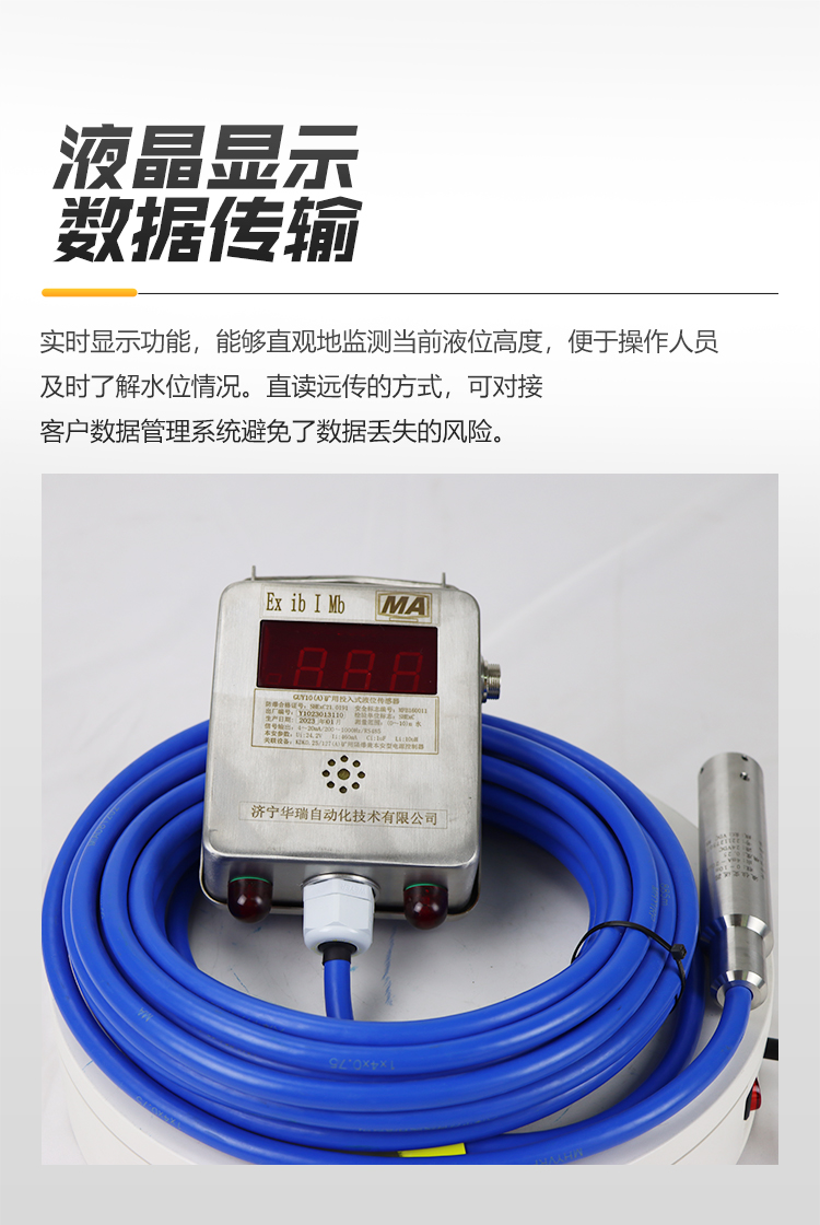 矿用本安型投入式液位计GUY10(A)是由济宁华瑞自动化技术有限公司研发和生产的一款专为煤矿井下水仓设计的液位检测设备。该产品不仅具备高精度的测量性能,还通过其本质安全型设计满足了煤矿复杂且危险环境对仪表安全性的严格要求。