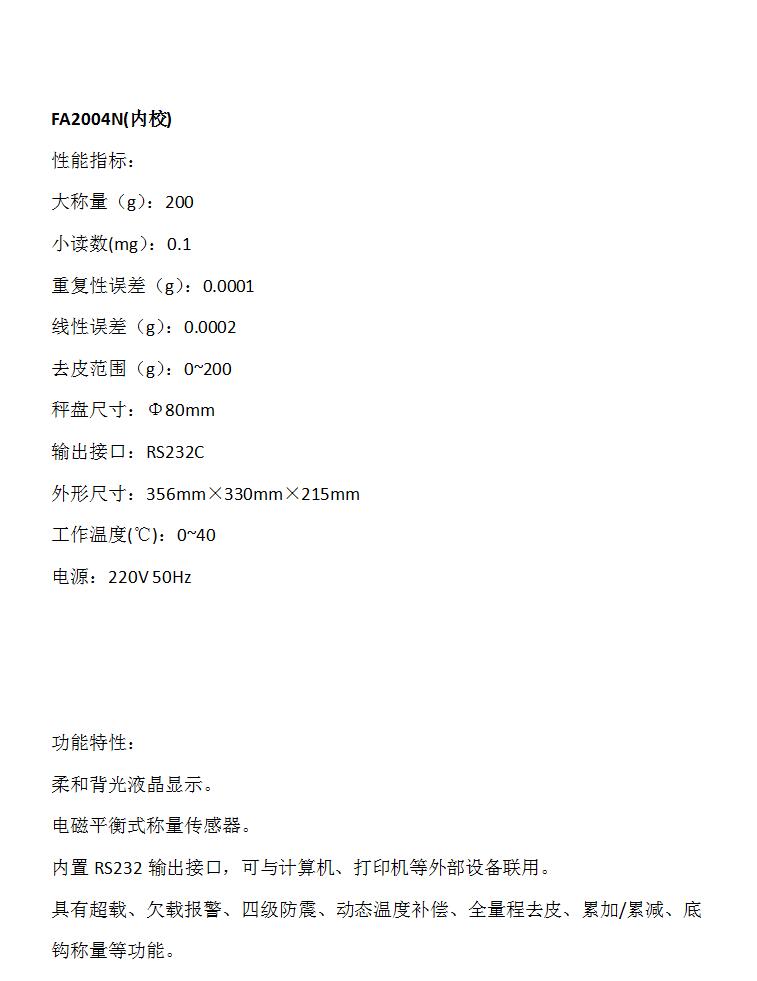 菁海实验室万分之一电子分析天平FA2004N(内校)计数功能单位转换化妆品原料称量用