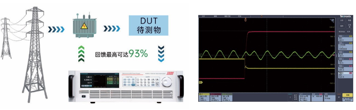 在纯负载模式下,N35500既能实现对外提供功率,又可以吸收功率,并将电能返回至电网,回馈效率高达93%,可广泛适用于锂电池、UPS、BOBC等设备测试。