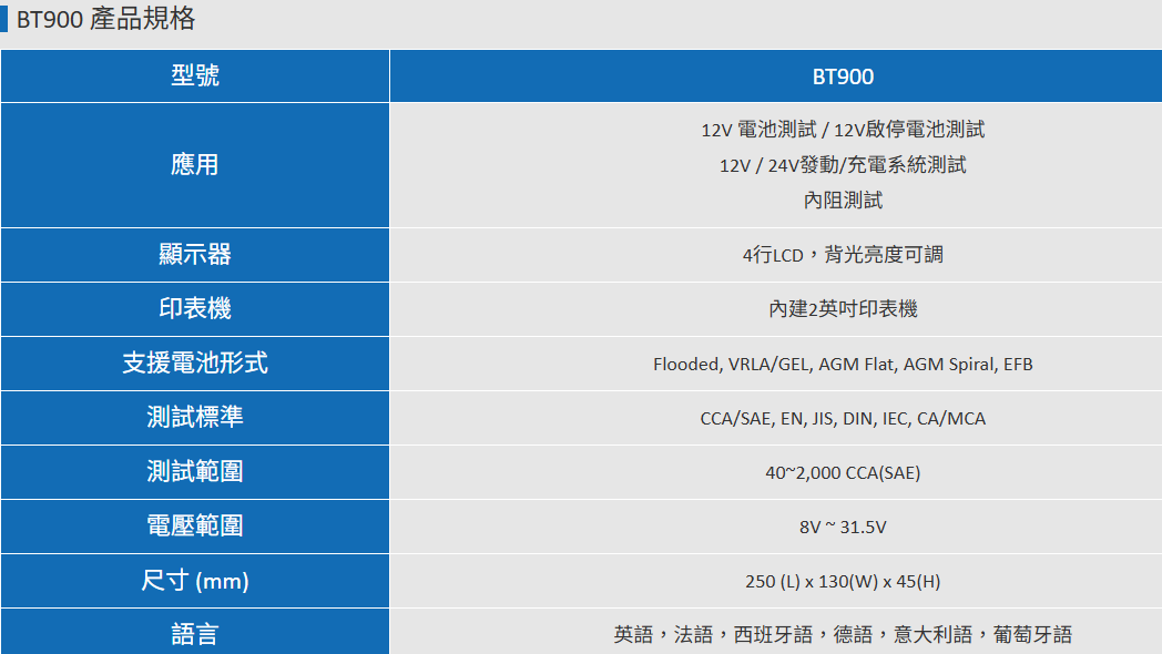 BT900是具有內建2英寸熱敏印表機的專業級電池和系統測試器,能在幾秒鐘內顯示準確的測試結果。