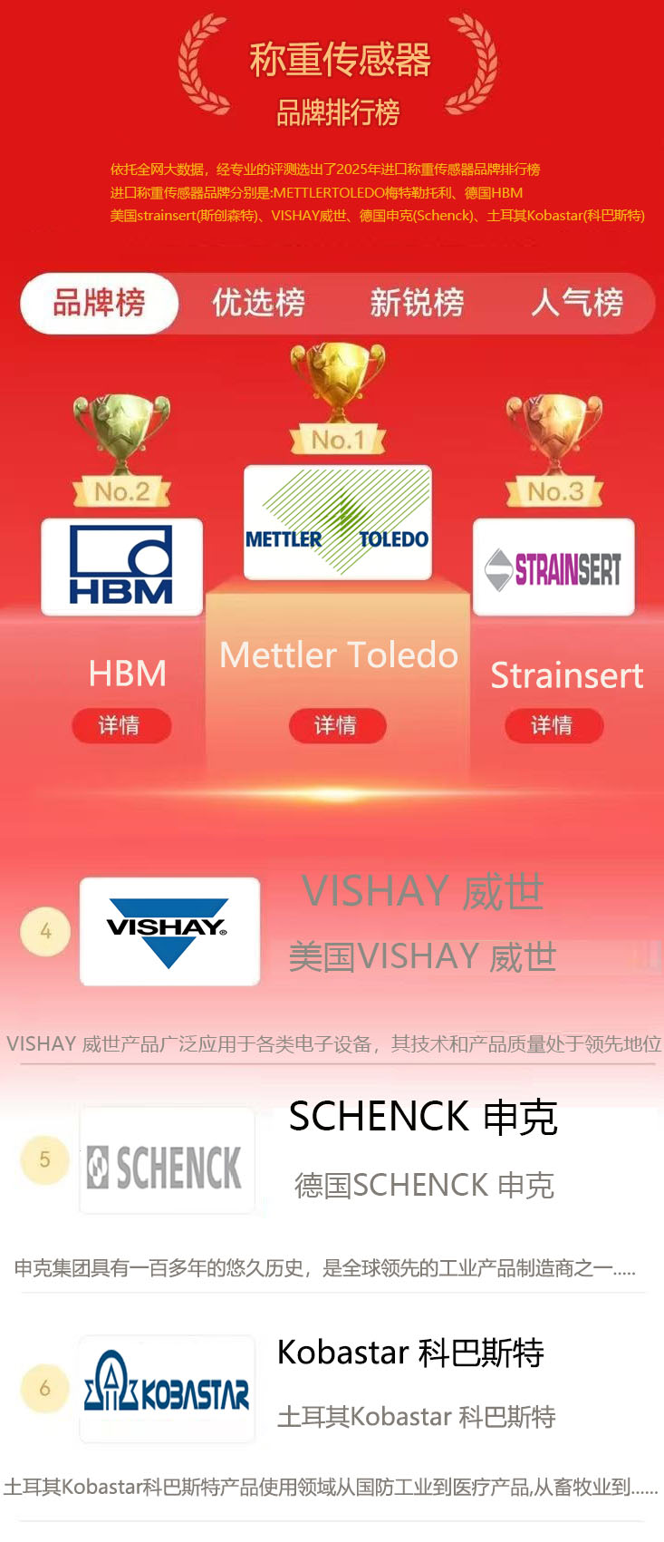 称重传感器品牌厂家排名